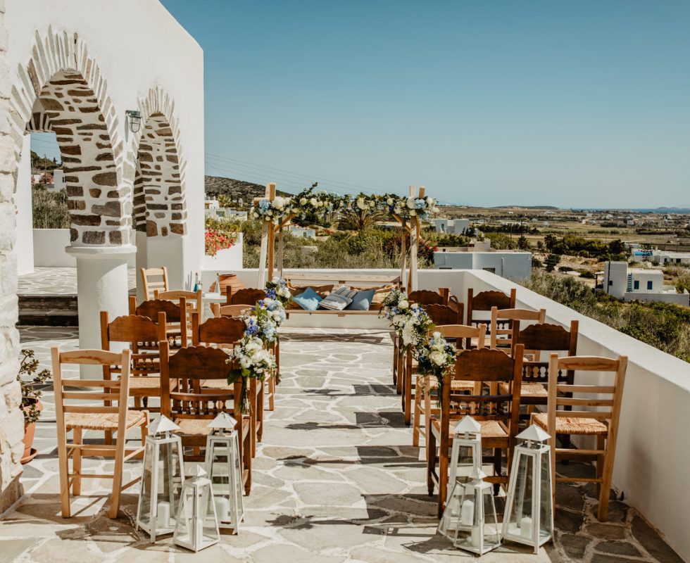 Nestled in the tranquil beauty of Paros with breathtaking views of the Aegean Sea and the island of Antiparos, Anthemion Paros Villas & Suites offers an enchanting setting for intimate weddings and celebratory events.